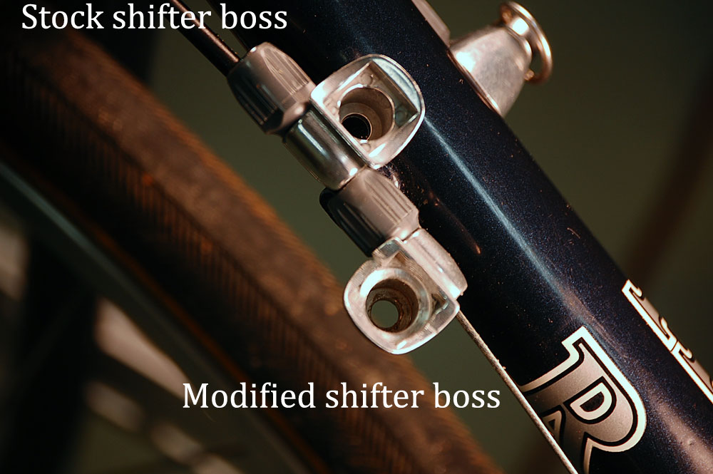 You’re telling me! I was about to drill out the stops when I realized I hadn’t even pulled the old shifters off yet to measure how far to go. Only then did I see the square bosses.