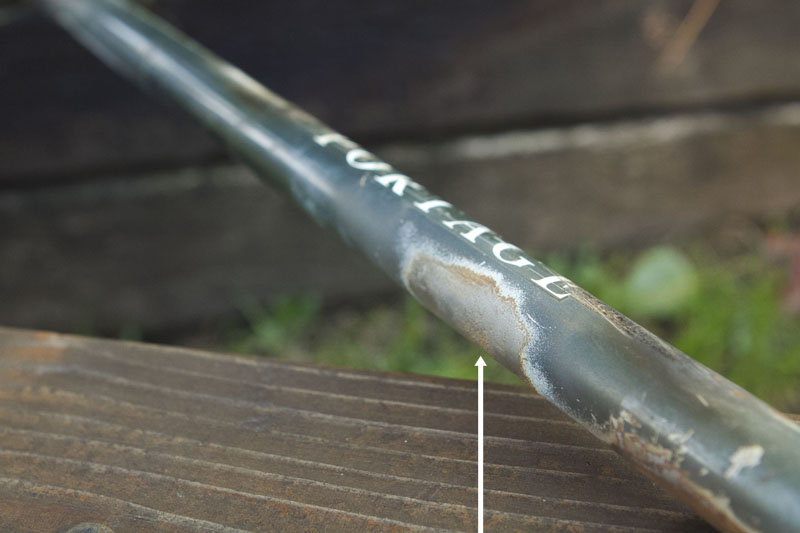 Being that there was significant rust on the top tube cable guides (and on the underside of the first cable guide), Travis suggested bead blasting the areas to make sure the rust had not gone through the steel. If all was well, all three cable guides would then be replaced with two cable stops. The idea is that the less cable housing needed, the less drag the cable will encounter helping overall braking performance. I have also heard the cable stop method also improves rear braking and saves weight, although the difference on weight is miniscule and shaving off a few ounces is not high on my list of priorities for this build.