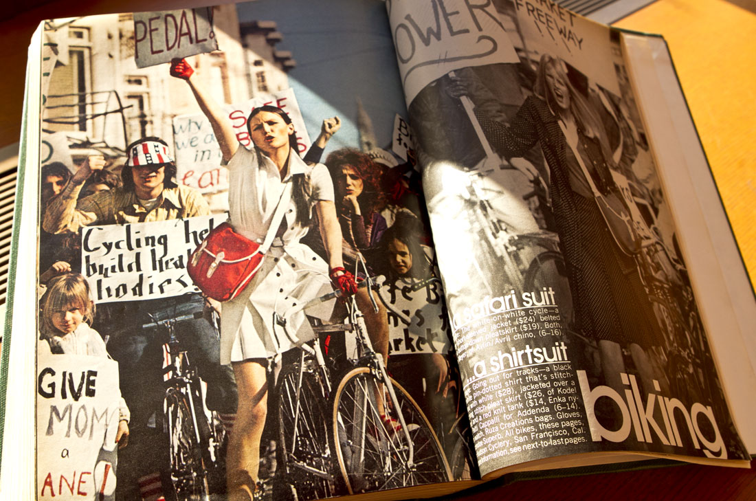 Good discovery (and use of library!) Yeah, it is disappointing that the photo shoot was mostly used to sell clothing, but at least it’s “everyday” clothing vs. lycra. (Though me being me, I wouldn’t mind seeing some wool jerseys of the era.)