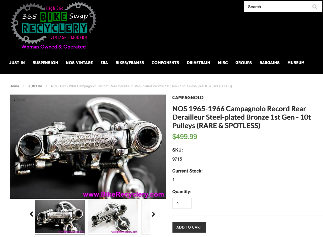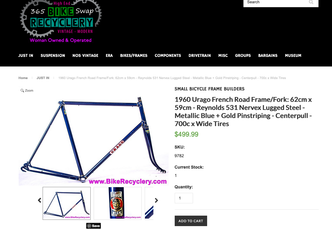 Over two-months passed by and the transaction popped into my mind. Knowing the Bike Recyclery is a seller of vintage parts, and since I now knew the seller, I thought I’d give the site a look to see if anything caught my eye. Starting with the “Just In” page. To my absolute horror, I found numerous remains, scattered around, of the now chopped up Urago. Each piece, basking in professional studio lighting and high-resolution, lavishly saturated color and bathing in silky marketing language.