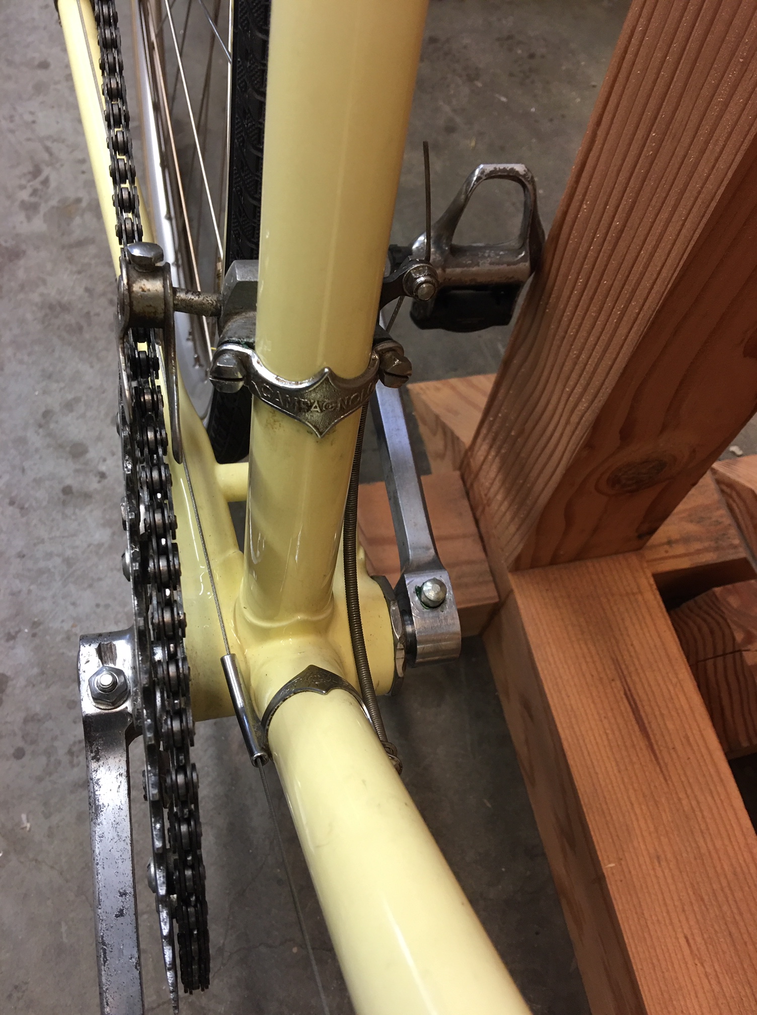 This bike looks great and like many other Girardengo’s there seems to be no “correct” build for it. The component spec changed quite often and with little consistency other than generally being Italian. This one looks nicely done and mostly period correct, with the exception that the down-tube decal appears to be from the mid 70’s era. At this time period Girardengo bicycles were only produced under license to other makers who wanted to use the name. These later ones bear little resemblance to the original marque.