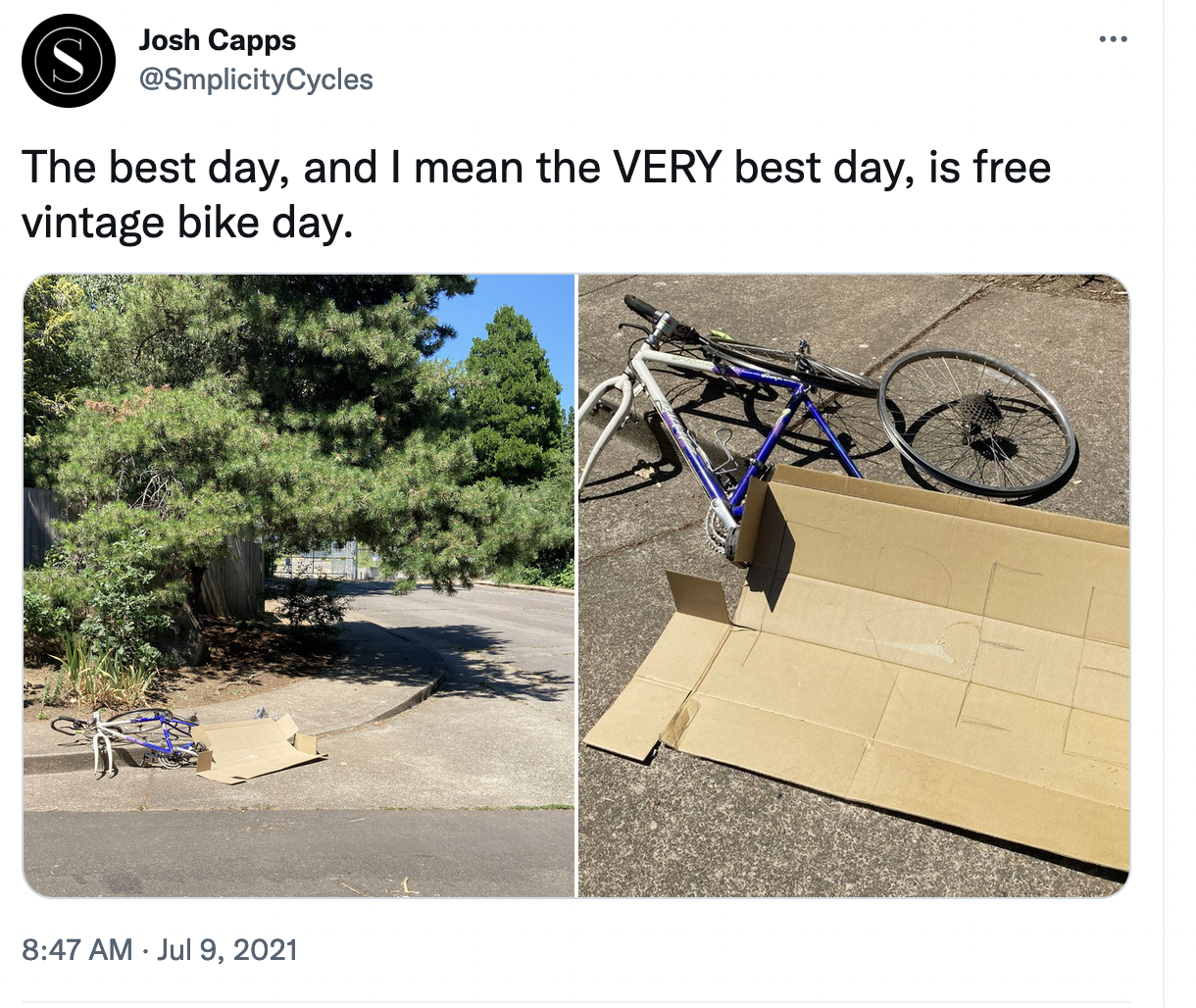 A lead for an “old bike on the curb” proves once again how one man’s trash can be another man’s treasure.